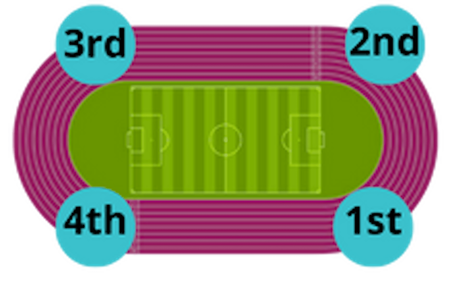 Activity 1: Shoulder tag (no baton): The receiver begins running. When the person with the baton reaches the checkmark, the receiver attempts to outrun the incoming person with the baton, and avoid being tagged on the shoulder.